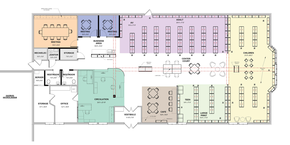 Architectural rendering of new Cafe' and Young Adult Area